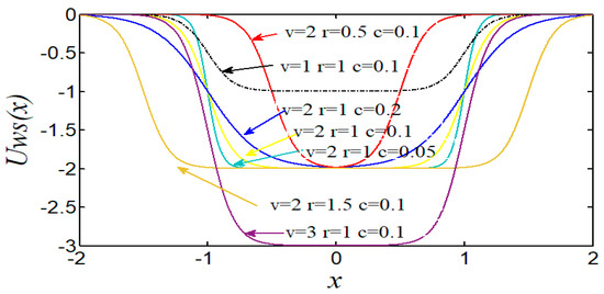 The Woods–Saxon potential (Uws) [28] is a nonlinear symmetric potential, proposed by Woods and Saxon. Uws can be expressed as follows: