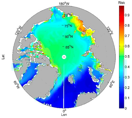 - This study only considers the natural factors when assessing the navigation risk in the Arctic; however, this is incomplete as other non-natural factors may also affect the navigation risk. Moreover, the data used to calculate the risk value were the average of 17 years from 2001 to 2016, which may lead to neutralization for some areas with high risk. Therefore, it is important to assess the navigation risk by calculating the frequency of various extreme weather occurrences in each sea area to solve this problem. Additionally, statistical data on ship accidents should be integrated into the calculated risk data for each sea area. In this case, the risk value of the sea area where the accident occurred is expected to be high.