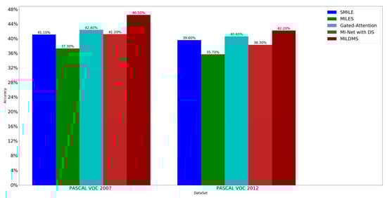 In order to further test the performance of MILDMS on one target concept MIL, we evaluated our method on the challenging PASCAL VOC 2007 and 2012 [35] which have 9962 and 22,531 images respectively. In these two datasets, the total 9962 and 22,531 images were divided into 20 distinct categories, which are person, bird, cat, cow, dog, horse, sheep, airplane, bicycle, boat, bus, car, motorbike, train, bottle, chair, dining table, potted plant, sofa, and tv/monitor.