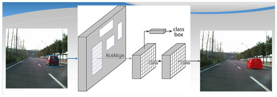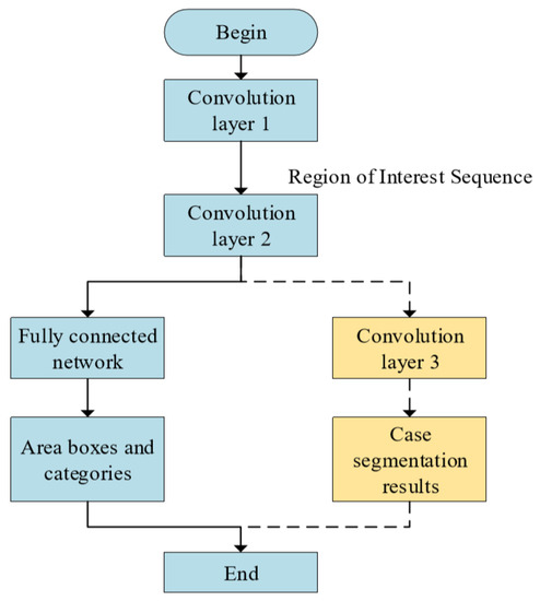 The Mask-RCNN framework or Faster-RCNN framework can be said to add a fully connected partitioned subnet after the basic feature network. Mask R-CNN is a two-stage framework. The first stage scans the image and generates proposals. The second stage classifies proposals and generates boundary boxes and masks. The method proposed in this paper is to annotate the RoIAlign layer and not to train the case segmentation. After FPN generates the suggestion window, it maps the suggestion window to the last convolution feature map of CNN. Then it directly uses full connection classification, border and mask to regress. The overall process is shown in Figure 2.