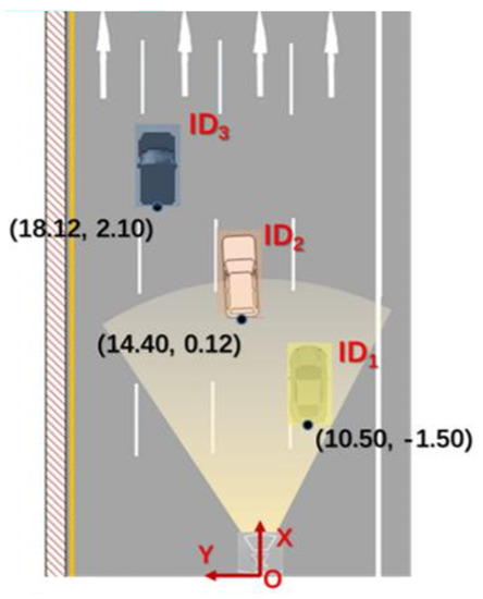 In the car body coordinate system, the camera’s focus is obtained by reading the internal parameters of the camera, and the left side of the car body is the y-axis forward direction. The lateral distance to the camera is shown in Table 4.