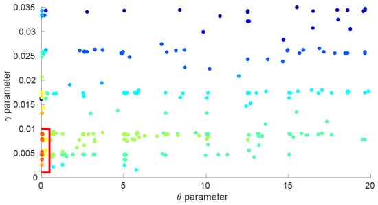 The three best candidates found by the algorithm are listed in Table 1. The parameters of the system differed only for , with a maximum difference of 10%. For , the differences are minimum. The algorithm, therefore, outputs stable results within narrow ranges.