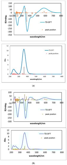 Due to the difficulty of treating excited states by any methodsof theoretical calculations such as DFT and semi-empirical methods of normal accuracy, simulated CD and UV-vis spectra may be reliable in a qualitative sense. Therefore, it should be noted that there is a limit to the quantitative discussion as well as the detailed comparison between experimental and simulated CD and UV-vis spectra.