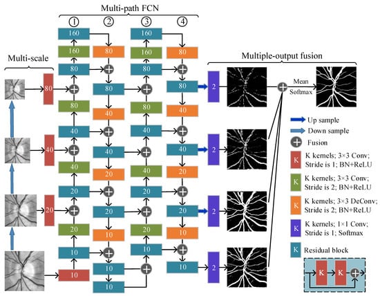 - Mo, J.; Zhang, L. Multi-level deep supervised networks for retinal vessel segmentation. Int. J. Comput. Assisted Radiol. Surg. 2017, 12, 2181–2193. [Google Scholar] [CrossRef] [PubMed]
