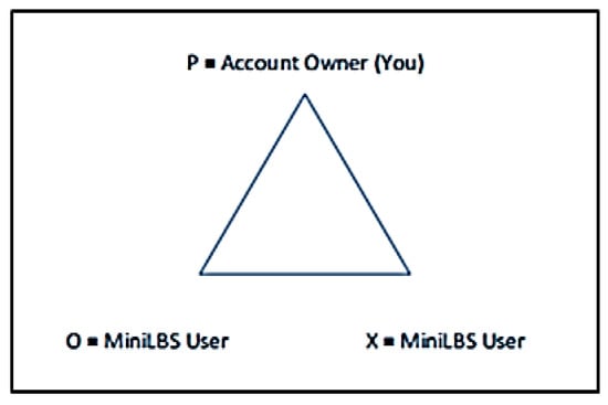 Balance theory is adopted in MiniLBS. Balance theory explains that attitudes towards persons or objects can influence each other. Heider’s idea [] was that we want to maintain psychological stability, and we form relationships that balance our trust and distrust. He developed the P-O-X triangle to examine relationships among three parties. In MiniLBS, the design of triangle P-O-X is a user or route comment as shown in Figure 3. For example, when a user logs in to MiniLBS, he or she will be denoted as P, which is the account owner in MiniLBS. O and X are the users from MiniLBS. Their relationships with P can be either best friend, average friend or stranger to each other. While the relationship between O and X depends on the type of route’s comment. The type of the route comment can be positive, neutral or negative. In this research, it is assumed that only positive and negative comments are taken into consideration.
