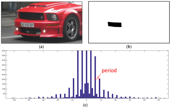 Obviously, if the quantization noise can be eliminated, a better mixture model of the DCT coefficients histogram will be obtained, which can improve the performance. In order to solve this problem, we first resort to the split noise filtering algorithm [25] to eliminate the split noise. In this algorithm, the authors first traversed the bins of the input histogram and gathered the bins introduced by the split noise according to Equation (6). Then, the bins introduced by the split noise were removed by moving these bins to the nearest neighboring bins. More detailed descriptions can be found in [25]. Once the split noise has been removed, the residual noise can be easily removed with a proper threshold Tfilter as it is very small. Here, Tfilter is experimentally set as 10% of the largest value of the histogram.