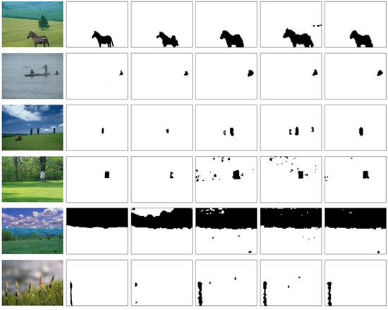 In this subsection, we evaluate the performance of all the methods qualitatively on some spliced composite images from CASIA TIDEv2.0 database [27]. The images in this database have been compressed with different quality factors. Besides, the sizes of the tampered regions were varying and the contents of these images are diverse. Figure 6 demonstrates the detection results for all the methods. The first column displays the tampered images. These tampered images were created by pasting a portion from the host image or another image and then compressed with JPEG format. The second column shows the corresponding ground-truth. The third to the last columns are the image tampering detection results of [18,19,22], and our proposed approach, respectively. For each result map, the white portion represents the authentic regions while the black portion stands for the tampered regions.