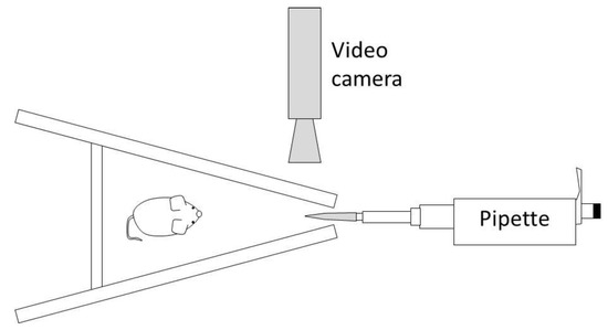 Apparatus used to test olfactory lateralisation in mice. The tip of the pipette filled with 10 µL of one of the five odour stimuli is inserted through the slit before placing the mouse in the apparatus.