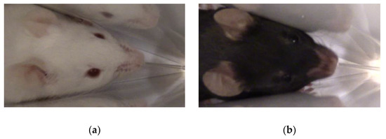 (a) Image of an NMRI mouse using its right nostril to sniff the odour presented; (b) Image of a C57BL/6J mouse using its left nostril to sniff the odour presented.