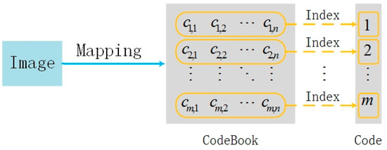 A digital image contains not only the information of pixels, but also many characteristics such as brightness, color, texture, edge, contour, and high-level semantics. It is possible to organize the seemingly unrelated image information in a reasonable way, by hiding the secret information through some mapping relationship, if these characteristics are described in certain way. If the corresponding original image can be found through certain mapping relationship, the secret information transmission is achieved through the original image, so that the coverless steganography without modifying the cover is realized. Therefore, the key to coverless steganography is the mapping of image information to a codebook. The construction of coverless steganography codebook is shown in Figure 1. Different secret-embedded covers are generated by a certain mapping relationship from an image, one set (one or more secret-embedded covers) of secret-embedded covers is indexed to a codeword, and all covers construct the codewords of coverless steganography. The secret information transmission is realized by transmitting a secret-embedded cover corresponding to codewords.
