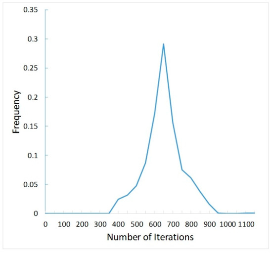 Statistics of the number of iterations required for network training to convergence.