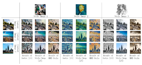 Comparison of the visual effects of the MNE-Style and the existing image style transfer network.