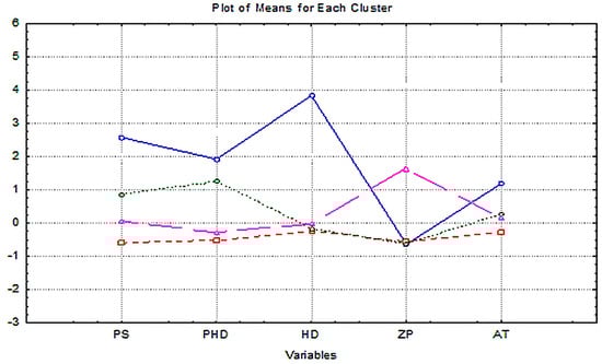 In order to determine specific discriminating parameters for each cluster a plot of means (Figure 3) is presented.