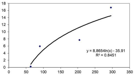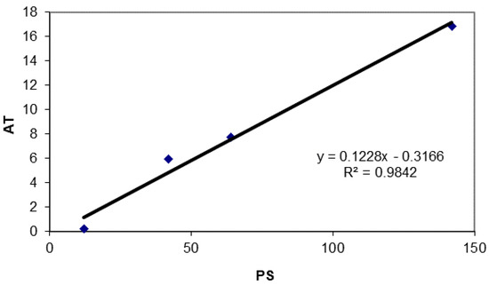 The linear regression found for the dependence of AT on the primary size parameter (Figure 4) is conformation of what other studies have already found on that issue [].