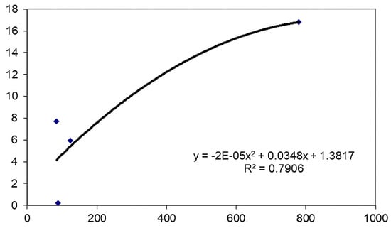 It is seen that the “toxicity” impact becomes more significant for systems with numbers higher than 60 (dominantly algae, mammalian cells, bacteria as test organisms for toxicity testing), high zeta potential values and lower primary size. The “structural” impact was significantly expressed for systems with very higher primary size and primary hydrodynamic diameter. It confirmed previous conclusions about the toxicity as a function of the primary size of AgNPs [].