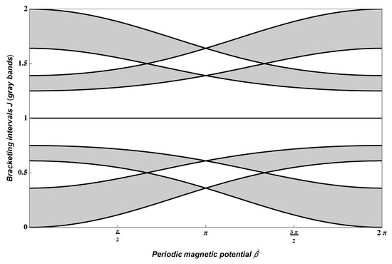 on each cycle (and plotted on the horizontal axis) affects the spectral bands (gray vertical intervals that appear as the intersection of the region with a line