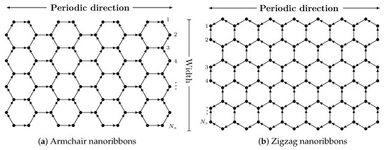 -periodic strips of graphene either with an armchair or zig-zag boundaries (see, e.g., Figure 5). The graphic in
