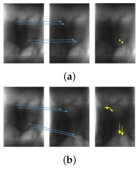 - Hu, Y.; Song, R.; Li, Y. Efficient Coarse-to-Fine Patchmatch for Large Displacement Optical Flow. In Proceedings of the IEEE Conference on Computer Vision and Pattern Recognition, Las Vegas, NV, USA, 27–30 June 2016; pp. 5704–5712. [Google Scholar]