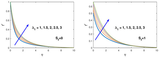 For the computation purposes, the at ∞ is chosen large enough, therefore the numerical solution depicts no perceptible variation for larger than . Subject to the boundary condition the has been fixed at .