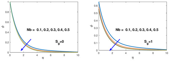 - The nano-fluid volume fraction profile retards with large values of Brownian motion parameter and Lewis number.