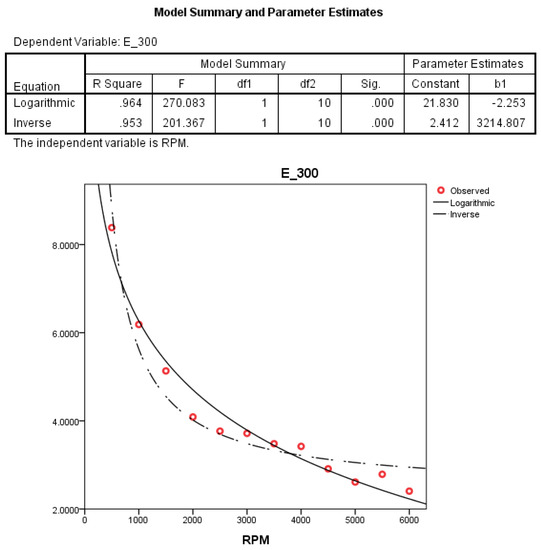The following table shows the results obtained by using the curve estimation function obtained in Section 2 when the RPM is fixed at and 3000, and the rotation time t is fixed at and 600, respectively (see Table 12).