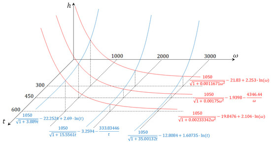 where is the initial thickness of the coating material [1,2,3,4]. Note that the final thickness of the film is affected more by the angular velocity and time than by the other factors. Given that , where is the number of revolutions per minute (RPM), the final thickness h of the film can be treated as a two-variable function of t and [1,2,3,4,5,6,7,8,9,10,11,12].