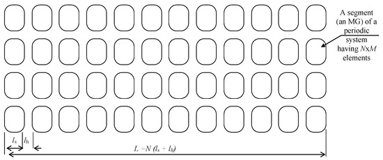 where L denotes the length of a side of the periodic structure, ls represents the length of the MG element, and lh is the space between the elements of the periodically structured field of microgenerators. During the propagation of vibrations, the structure behaves such that the electric voltage is almost in phase at the output of the windings.