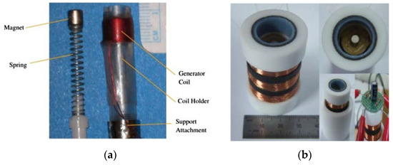 The permanent magnet (a) having a spring in the cylindrical structure of the energy harvester [18], (b) tested sample designed by Lee et al. [17].