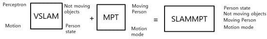 Visual simultaneous localization and mapping (VSLAM) combined with motion person tracking (MPT) effectively applied for person tracking shown in Figure 3.