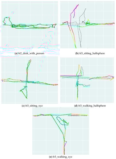 In some outcomes such as fr3_sitting_halfsphere and fr3_walking_xyz, there were only a few key frames. The ORB-SLAM2 scheme was suppressed by our technique because the actor was walking too close to the camera, which requires too much scene space to ratify function points.