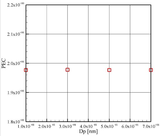 PEC for the particles with an average diameter of 10 nm and Re of 1000.