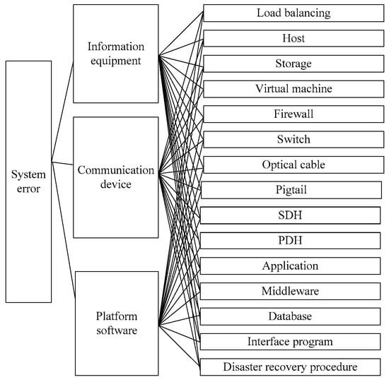 The directed connection diagram of three module nodes “information equipment”, “communication equipment”, and “platform software” when an access failure occurs in a power information system is given, and 15 failure cause nodes corresponding to these three modules are established. The schematic diagram of the communication failure cause node is shown in Figure 4.