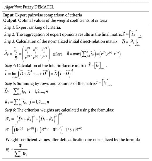 The algorithm of the fuzzy DEMATEL method.