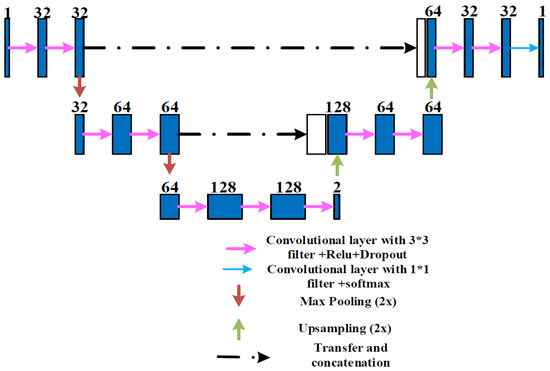 The framework uses cropped input which effectively expands the amount of data and makes the model learn the low-level features of the optic disc more accurately. Figure 4 shows the improved U-net structure used in this paper.