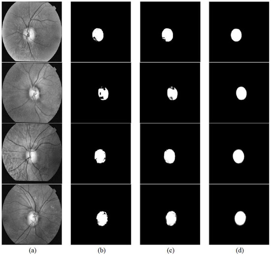 - Saleh, M.D.; Salih, N.D.; Eswaran, C.; Abdullah, J. Automated segmentation of optic disc in fundus images. In Proceedings of the 2014 IEEE 10th International Colloquium on Signal Processing and Its Applications (CSPA 2014), Kuala Lumpur, Malaysia, 7–9 March 2014; pp. 145–150. [Google Scholar]