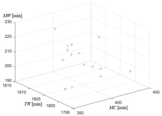 Multi-objective optimization is an area that deals with multi-objective decision-making of mathematical and combinatorial optimization problems [19]. Multi-criteria optimization problems involve more than one optimization function, where several variables of the optimization problem need to be optimized. A main characteristic of multi-objective optimization is that there is not only one optimal solution optimizing the optimization function, but, for these functions, there are infinitely many Pareto optimal solutions [20]. Pareto optimal solutions are non-dominant, Pareto optimal, or Pareto effective. All Pareto optimal solutions in the Pareto space are considered equally appropriate. The field of multi-objective optimization is increasingly present in everyday life, due to the optimization problems′ complexity. Multi-objective optimization can be found in all fields of sciences, economics, logistics, etc., and where it is necessary to make optimal decisions in the presence of trade-offs between two or more conflicting goals [21].