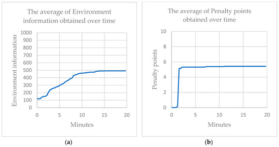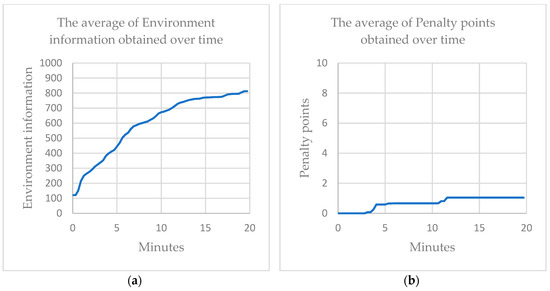 (a) The average of environment information obtained during ten 20-min-long autonomous search and rescue missions in public-type building environment; (b) The average penalty points obtained by the robot during the same test runs.