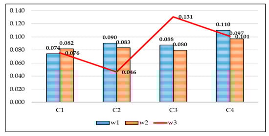 As shown in Table 13, 12 sub-criteria were retained in the further analysis, per three within each main criterion. The calculated weight coefficients determined the order of introducing the criteria and sub-criteria in the further analysis and calculation of the values by applying the I-distance. The values in the table indicate that the weights of the individual sub-criteria are fairly uniform and range from 0.062 to 0.100.