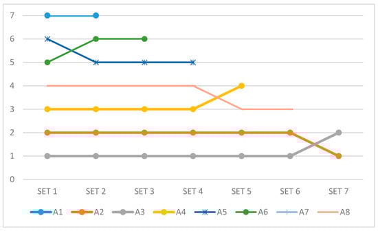 As part of the sensitivity analysis (SA), the dynamic impact on the rankings of the alternatives was checked, as shown in Figure 4.
