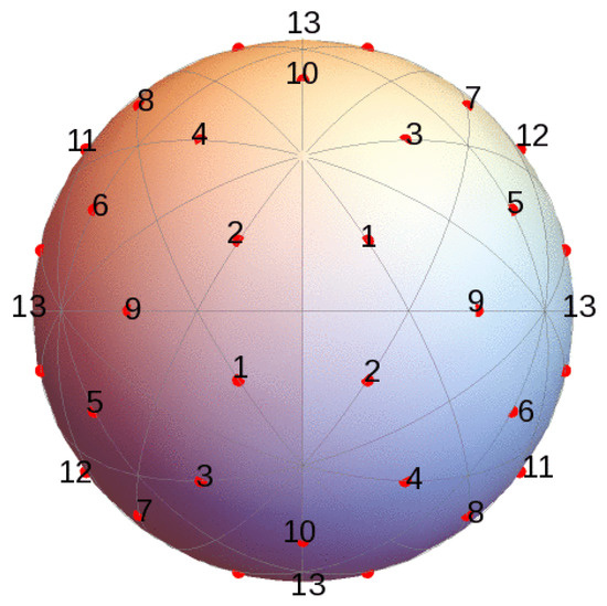 By way of illustrating the combinatorics and topology, we consider the map g introduced previously. Its critical set realizes an achiral configuration whereby the critical points lie on the mirrors of reflective icosahedral symmetry. As is the case for all of the 31-maps, the centers of a pentagon and triangle are fixed by g while a quadrilateral’s center is sent to its antipode.