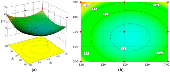 where xi is the coded variables; βi is the linear effect of xi; βij is the interaction between xi and xj; βii is the quadratic effect of xi.