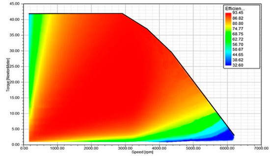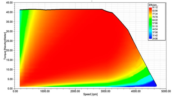 Compared with Figure 9 and Figure 10, it can be seen that the maximum efficiency of the novel SIPMSM is 91.12%, and the maximum speed that can be achieved is only 4750 rpm, while the maximum efficiency of traditional SIPMSM is 93.45%, and the maximum speed is 6250 rpm. Moreover, the novel SIPMSM has a wider range of high efficiency working area, which shows that the novel SIPMSM has a better performance in terms of flux magnetic speed expansion, thus verifying the veracity of theoretical analysis.
