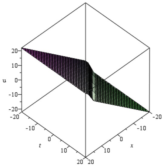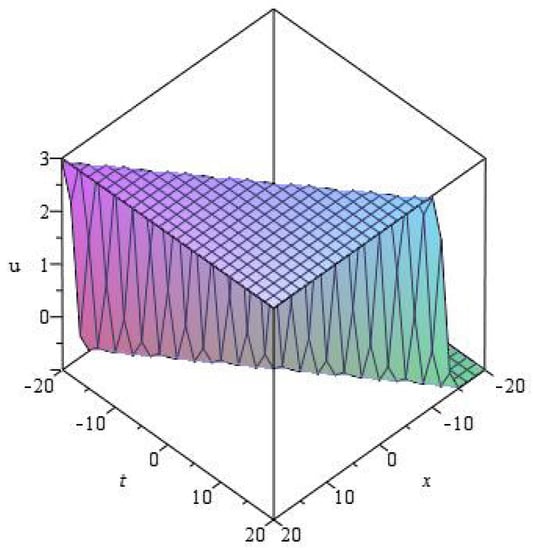Then, substituting Equations (26) and (29) into Equation (28), we collect all terms of and obtain the algebraic equations including unknown numbers and c. By solving these equations, we have the following solutions