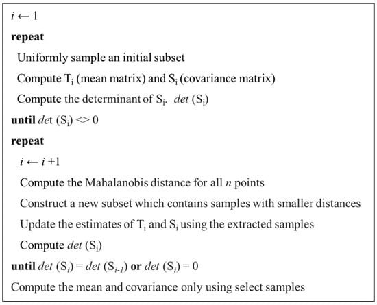 - Hubert, M.; Debruyne, M. Minimum covariance determinant. Wiley Interdiscip. Rev. Comput. Stat. 2010, 2, 36–43. [Google Scholar] [CrossRef]
