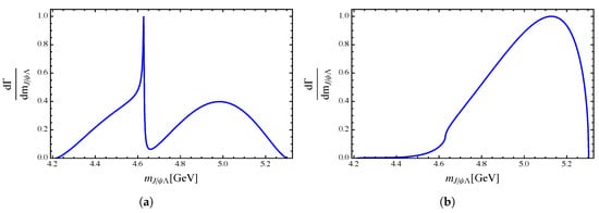After integrating , the normalized differential decay widths in the invariant mass distribution in these two cases are shown in Figure 3 with the widths of the exchanged particles taken into consideration.