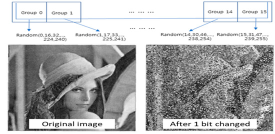 Techniques that prevent malicious code from being hidden in an image file include a method to randomly mix and reprocess the image indexes [19]. As shown in Figure 3, this method divides the entire image into 16 groups and stores the reprocessed image indexes. This method does not give specific rules to the distribution of contrast, and hides information in online images. It can deal with the threat of information hiding that can be extracted later.