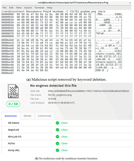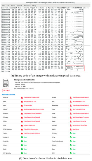 - George, G.; Savaridassan, P.; Devi, K. Detect Images Embedded with Malicious Programs. Int. J. Pure Appl. Math. 2018, 120, 2763–2777. [Google Scholar]