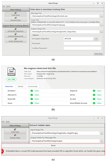 - Virusbulletin. How It Works: Steganography Hides Malware in Image Files. 2016. Available online: https://www.virusbulletin.com/virusbulletin/2016/04/how-it-works-steganography-hides-malware-image-files (accessed on 1 September 2020).
