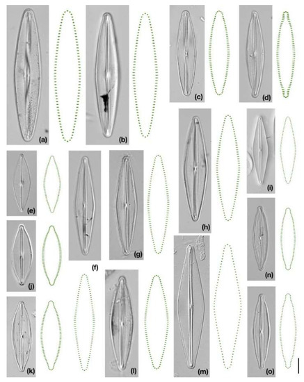 - Cerisier, A.; Vedrenne, J.; Lavoie, I.; Morin, S. Assessing the severity of diatom deformities using geometric morphometry. Bot. Lett. 2019, 166, 32–40. [Google Scholar] [CrossRef]