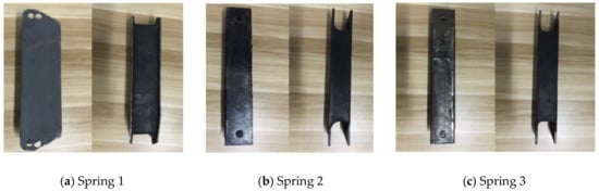 The experimental conditions were as follows: a static experiment with a constant room temperature of 19 ± 0.1 °C, frequency of 0.1 Hz (static), and an amplitude of 1~8 mm was carried out at a 20 min interval. As shown in Figure 4, the surface temperature of springs was measured using an infrared thermometer.